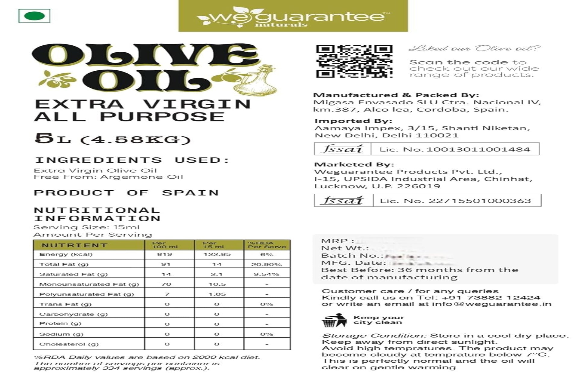 Weguarantee Naturals Extra Virgin Olive Oil – 5 Litre | Unrefined & Cold Pressed Oil | Packed in Spain |